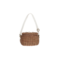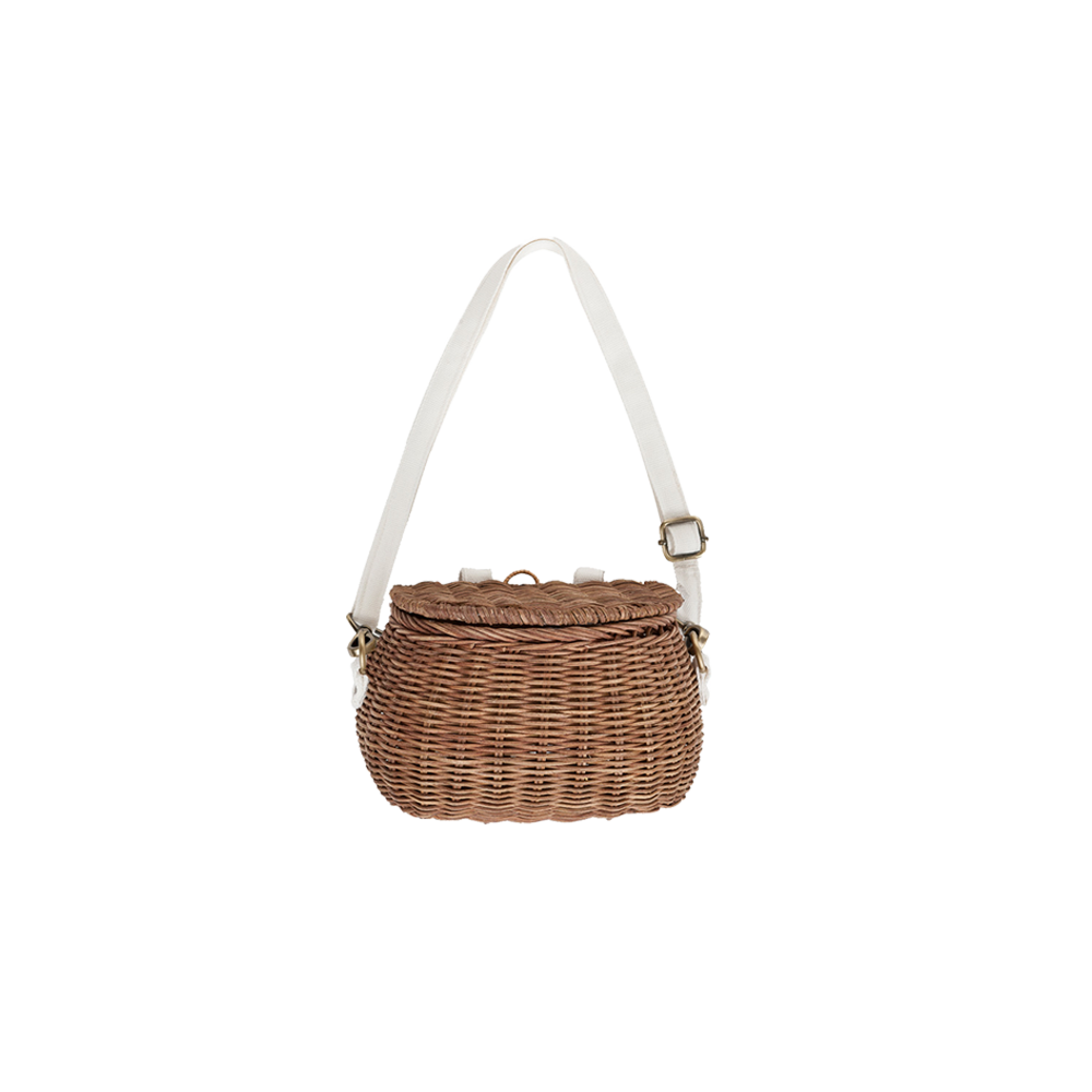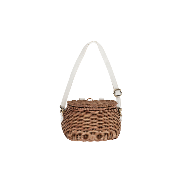 • Handwoven from Rattan and featuring a little flap lid, a rattan loop on the back for hanging off hooks, removable adjustable canvas loops (for attaching to bikes/ scooters), and a removable adjustable canvas strap with brass hardware for when the kiddos are off their mode of transport and out and about