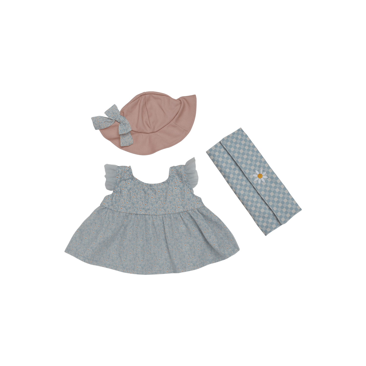 • Includes floral dress, sun hat, and gingham picnic blanket.