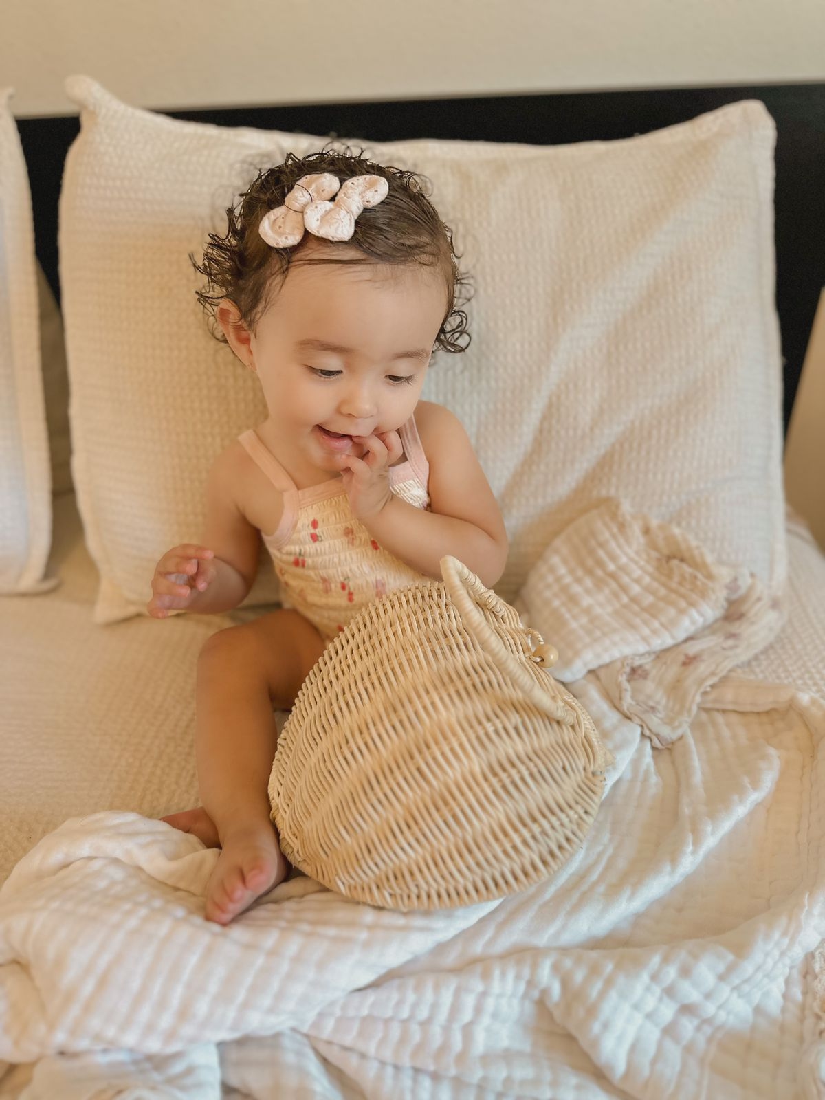 The Rattan Luvya Bag-Straw is fantastic. It is a great size (not too small or too big). The straw is really heavy duty, not flimsy, and the inside of the bag is lined and has a little pocket as a bonus. The wooden button that closes the bag is sturdy and works just fine. The handles make it easy to tote around with treasures inside. Thanks for being a great company.