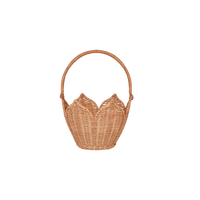 Fill your nursery, play space, or holiday gatherings with everlasting cheer using our Rattan Poinsettia Carry Basket - Natural! This beautifully woven basket features a whimsical scalloped edge and a convenient carry handle, making it perfect for toting essentials in and out of the home. Fill it with toys, festive treats, or holiday decorations—whatever your heart desires!